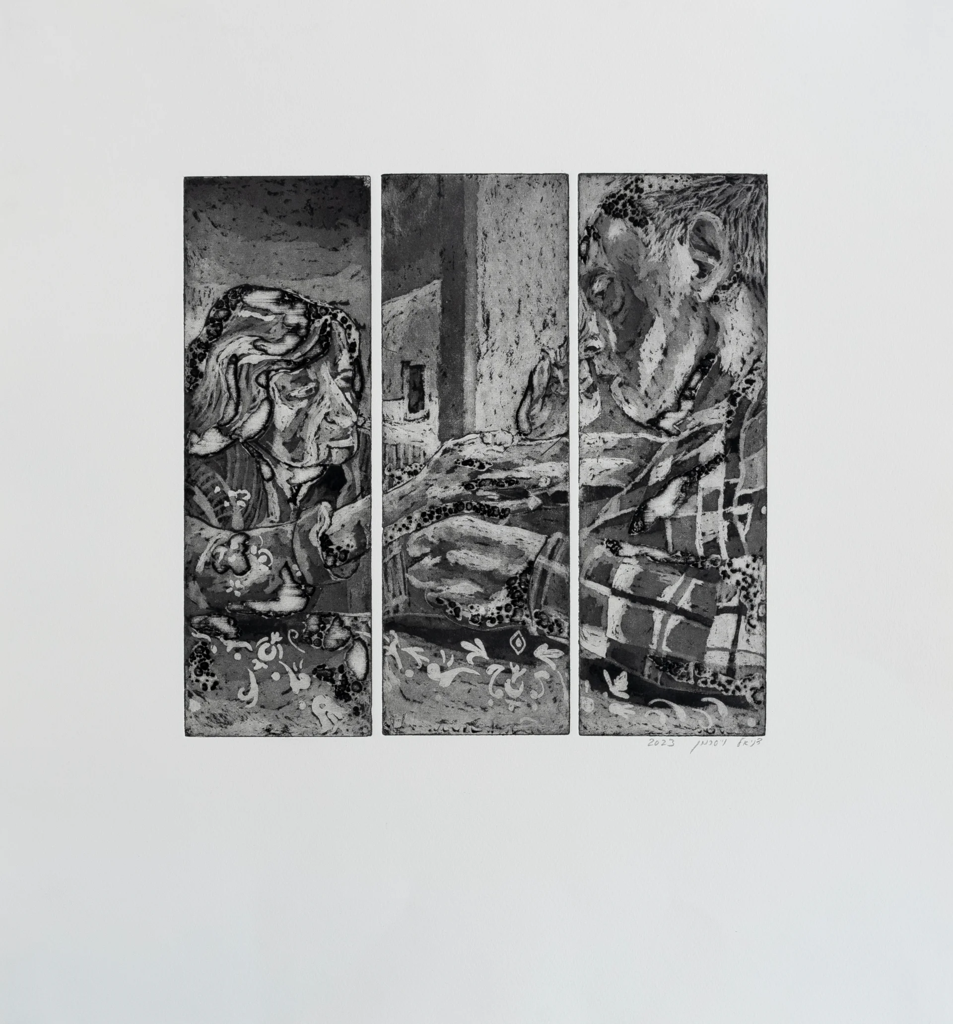 היצירה עוסקת בימיו האחרונים של אדם, ברגע שבו הגוף כבר אינו מאפשר עצמאות. בת הזוג, שהייתה לצידו כל חייו הופכת ליד המאכילה: מחווה אינטימית של אהבה ותלות. נוצרה בשנת 2023