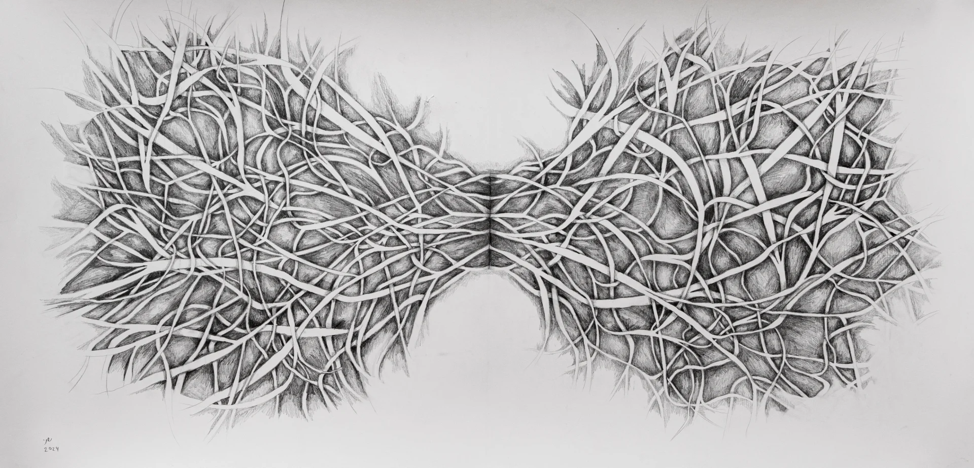 שורשי העץ וענפיו הופכים לדימוי סימטרי, מאוזן ולא מאונך, המאזכר גם נימי דם בגוף.