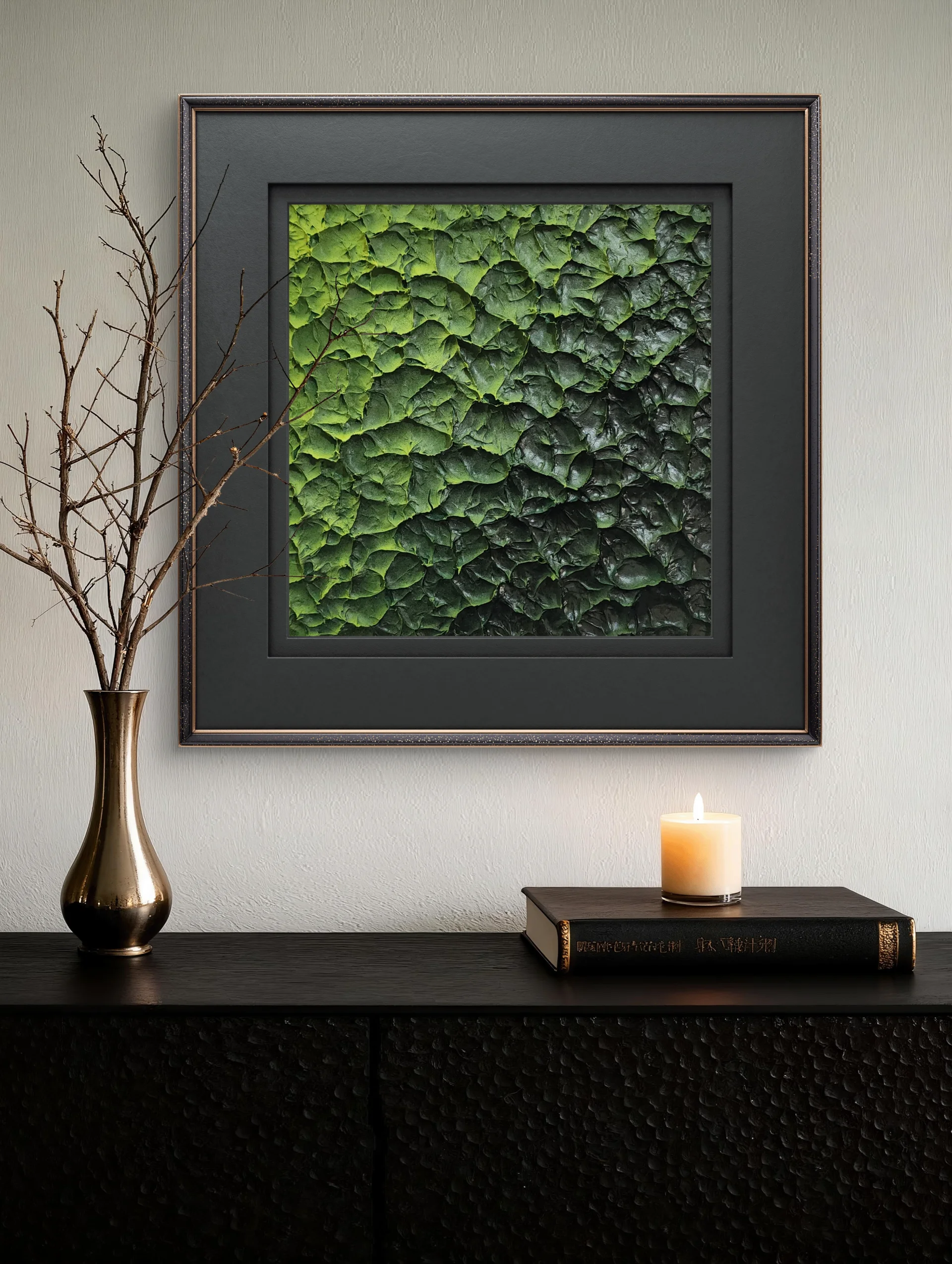 Dardraken Skin represents the third installment in my Dragon Skins series, showcasing a meticulously crafted textured surface that captures the layered complexity of mythical dragon hide. Constructed from a proprietary acrylic mixture, each piece features dimensional relief work that mimics natural scale formations. The composition employs premium acrylic spray paints in turquoise, metallic silver, black, and neon yellow, creating a sophisticated chromatic interplay. A protective varnish topcoat delivers a glossy finish that enhances depth perception and produces a lifelike, animate quality. This sculptural work demonstrates advanced material manipulation and color theory application, making it a distinguished addition to any curated collection.