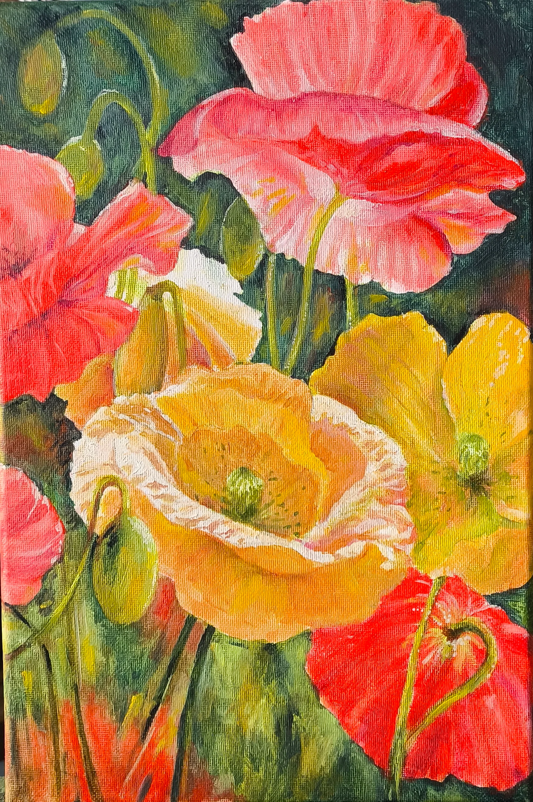 פרגים אדומים נפתחים אל השמש בלי פחד. יש בהם שמחה פשוטה ואמתית.