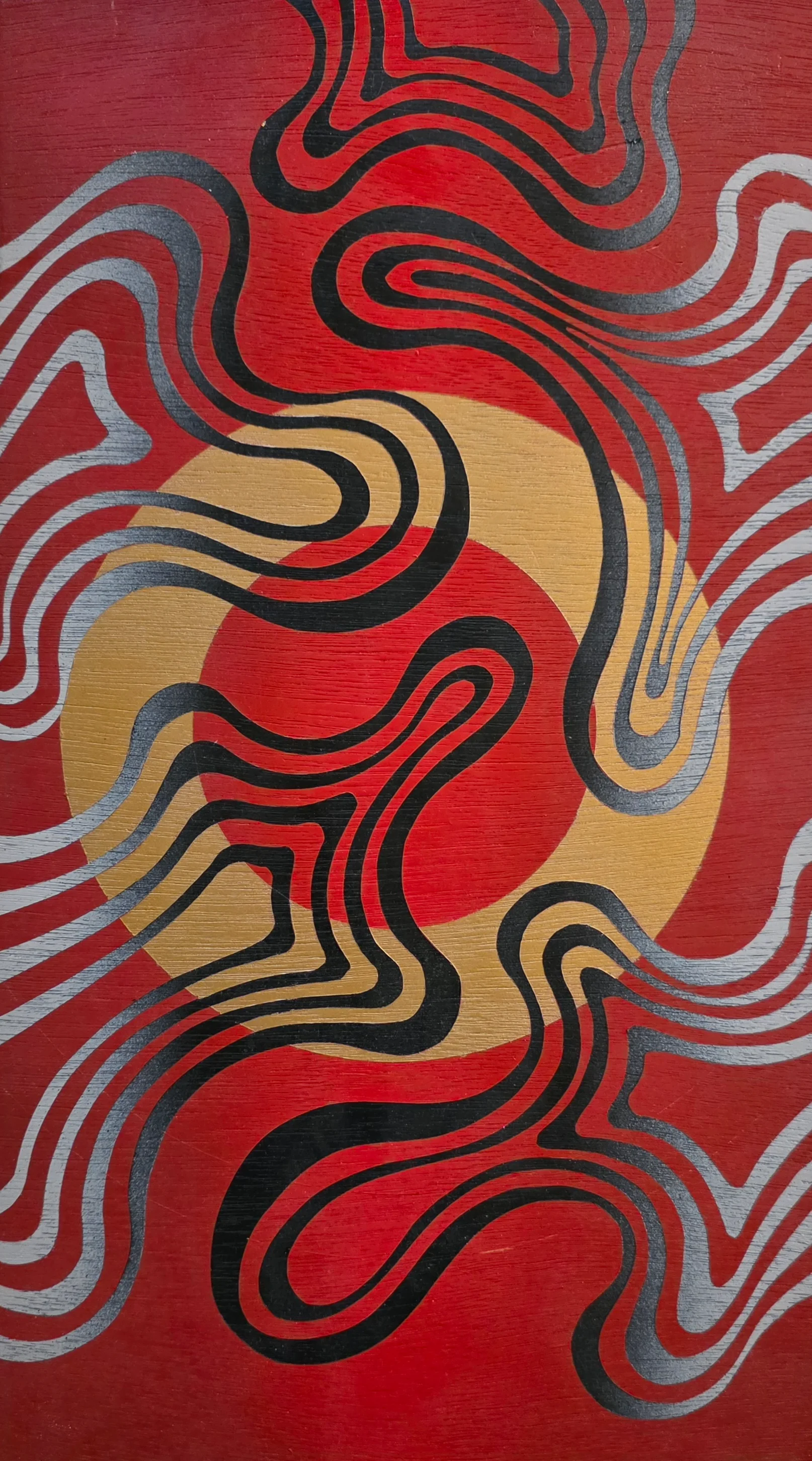 is an abstract work exploring flow, direction, and consciousness in constant motion. Organic lines twist in rhythmic layers over a powerful backdrop, creating a sense of inner wandering between order and chaos like a thought searching for its place.