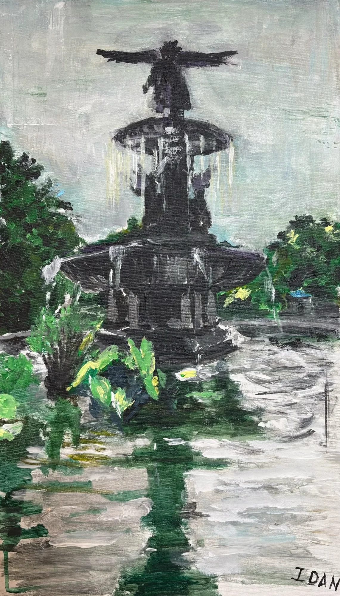 A painting inspired by my visit to New York - a city very close to my heart. This piece captures the timeless beauty of the famous fountain in Central Park, reflecting my deep connection to the city's energy.
