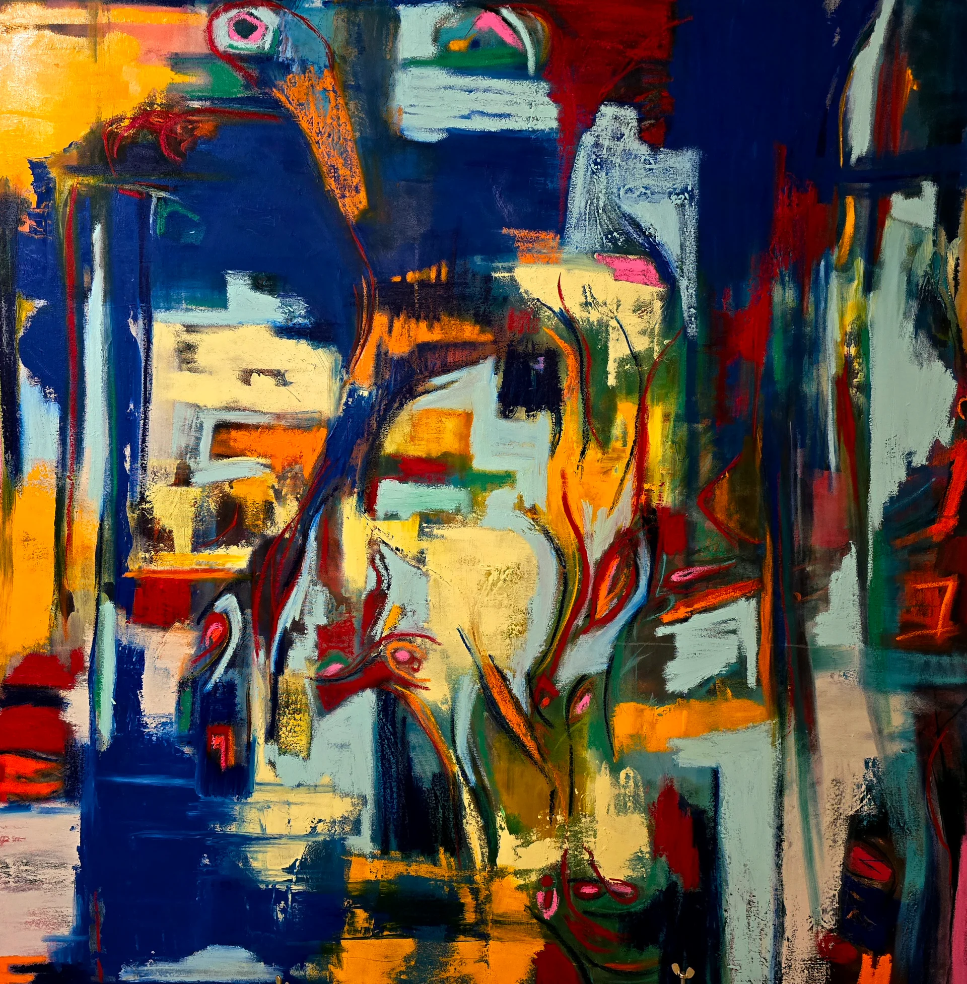 Abstract painting, oil and acrylic on cavas. Mixed media