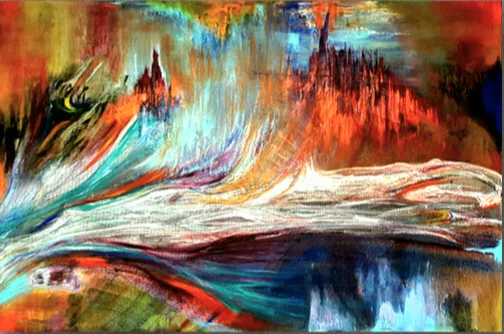 Abstract painting, oil and acrylic on cavas. Mixed media