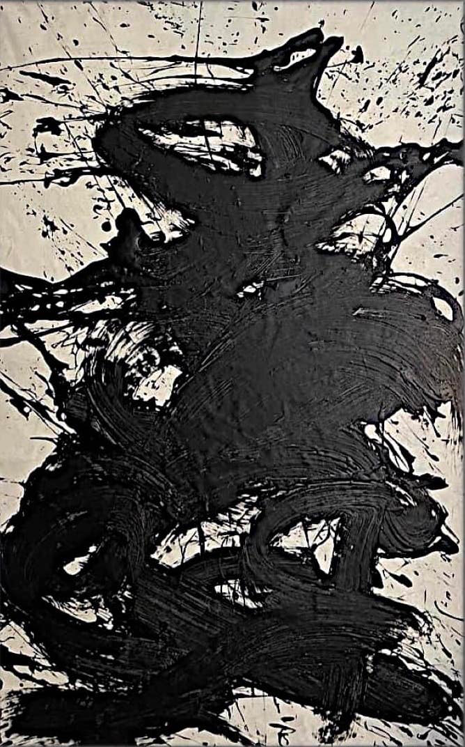 This abstract expressive work reveals a dialogue between light and shadow, where deep black seems to dance across a soft, luminous background. Free brushstrokes and spontaneous acrylic splashes create a sense of movement and inner energy, transforming the canvas into a living emotional landscape. Each viewer is invited on a personal interpretive journey: the painting leaves space for individual experience and discovery, becoming a mirror of the soul. The work was exhibited in a museum in New Jersey, USA, where it received significant acclaim from both the audience and art critics.