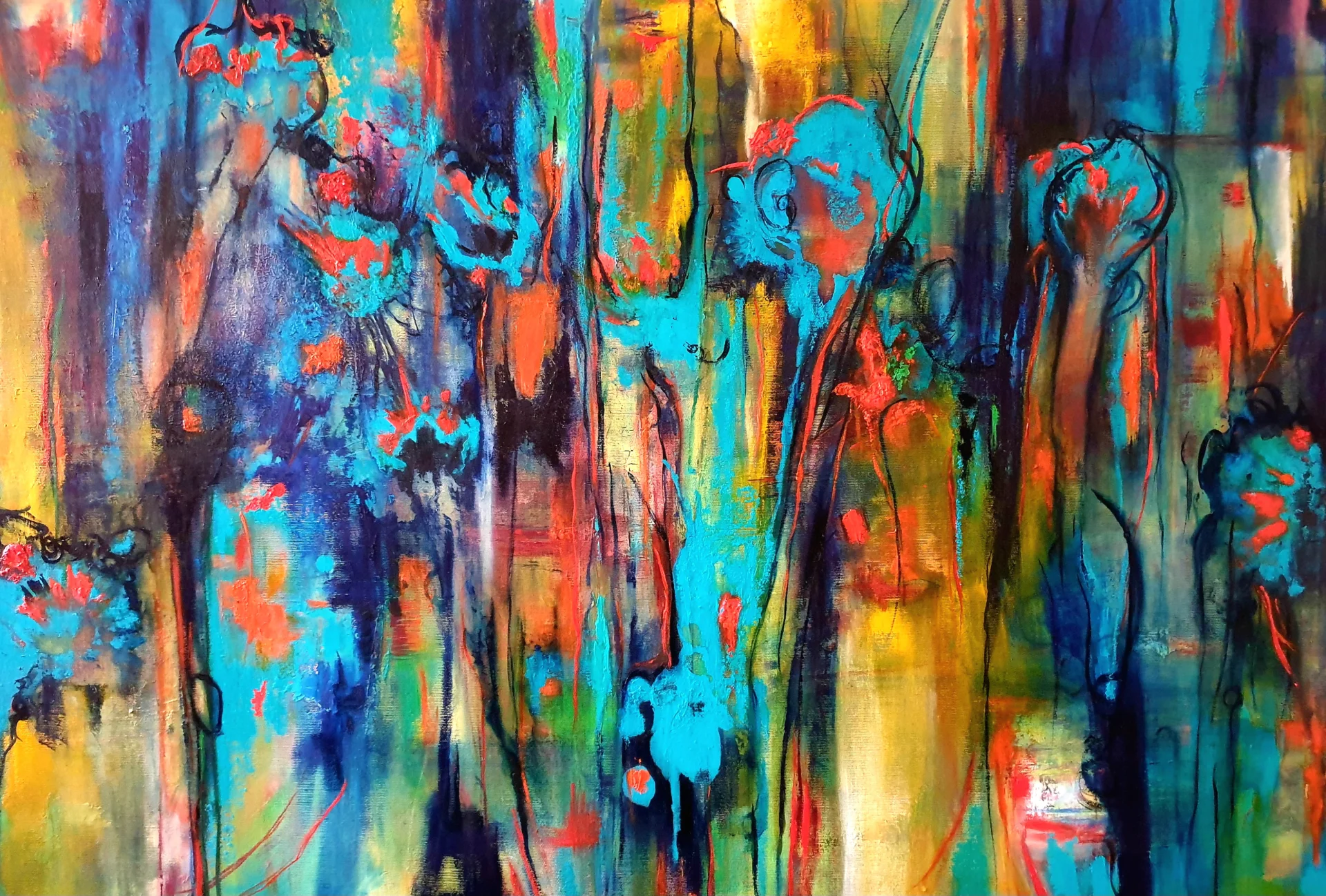 Abstract painting, oil and acrylic on cavas. Mixed media