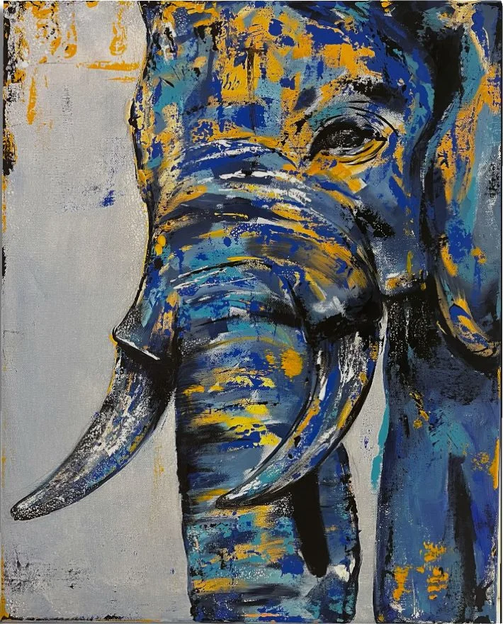 A portrait of grounded presence and quiet confidence, expressed through a deep, steady gaze. The contrast between cool blues and golden accents creates a balance of strength and elegance