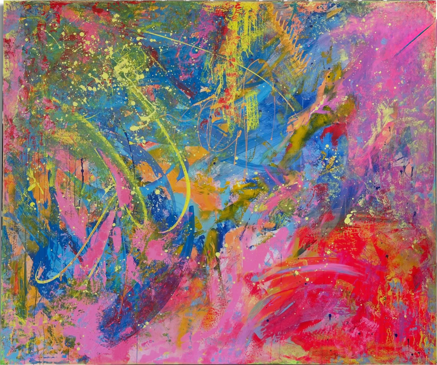 A sweeping burst of color that feels like creation without limits. Movement and texture build a dynamic depth, balancing control and total release.