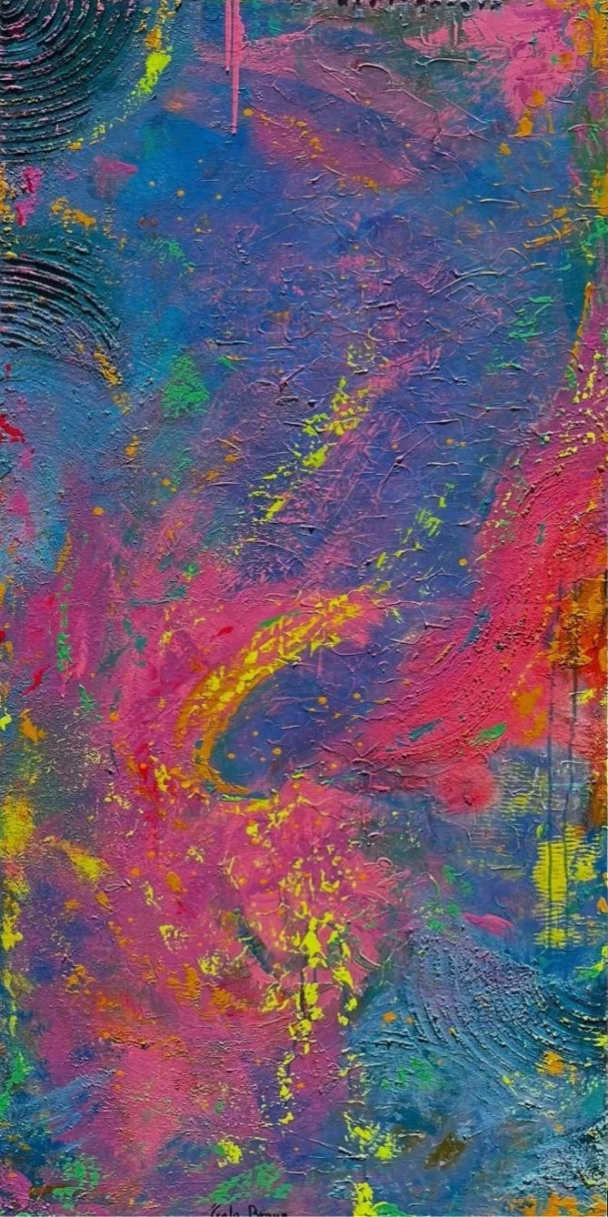 A powerful swirl of color erupting from the center like an unstoppable emotion. The layers and textures create a vivid depth, balancing chaos with magnetic beauty.