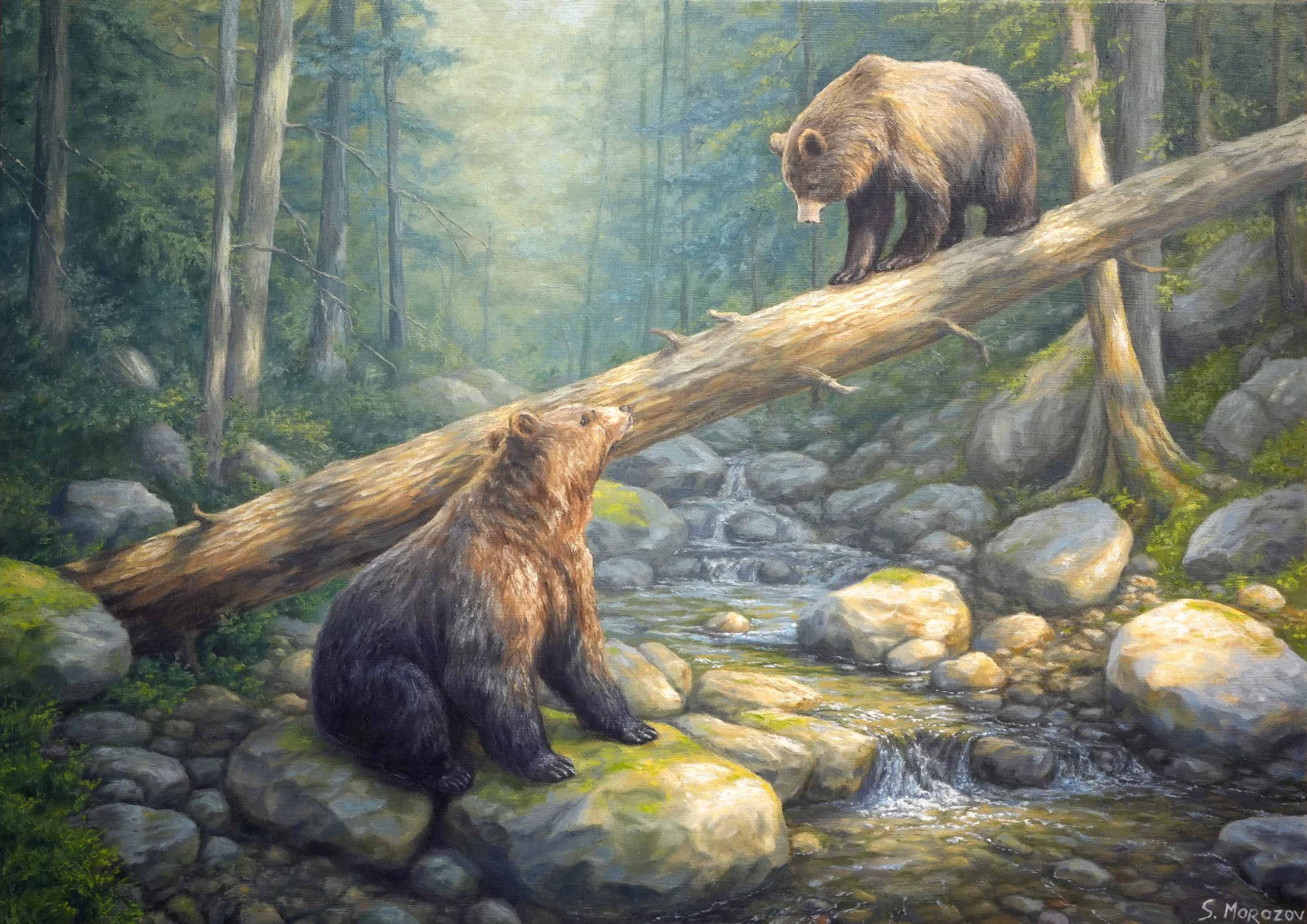 Forest Encounter is an original oil painting measuring 70 × 50 cm (27.5 × 19.6 inches), created on a 3 cm deep stretched linen canvas. The artwork continues around the edges, allowing it to be displayed without a frame for a clean, gallery-style finish. The painting is signed on the front and signed and dated on the back.