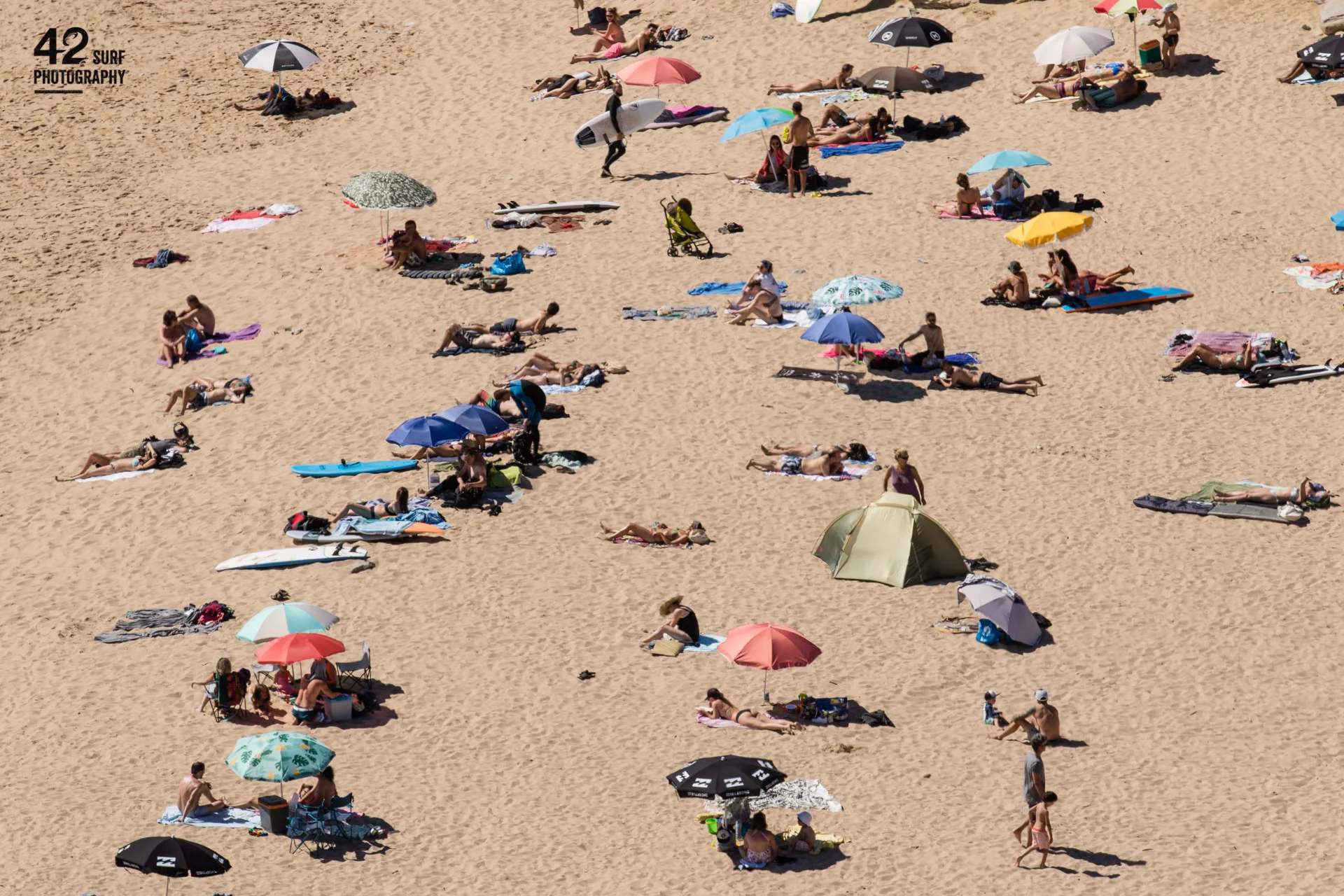 From a distance, the beach becomes a game board. Bodies are scattered across the sand like pieces of a puzzle not yet completed โ each placed in its own position, yet belonging to a larger image beyond itself. Towels, umbrellas, and shadows form repeating patterns, a hidden order emerging from entirely personal choices. There is no single hero and no clear center. The eye moves from one person to another, searching for meaning, attempting to assemble a whole story from separate moments. Each figure exists within a private world, yet together they create a shared human landscape โ a composition of rest, distance, and proximity. "Human Puzzle" explores the way we exist together without truly meeting: present within the same space, sharing the same light, yet remaining independent units within an evolving collective image.