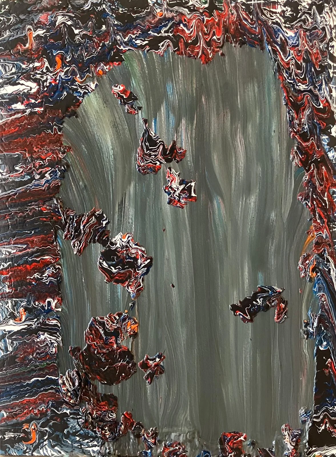 The Abyss evokes a powerful sense of descent—where movement becomes emotion and depth becomes experience. Layers of thick, textured paint create a feeling of weight and motion, as if the surface itself is being pulled downward into a central void. The contrast between fluid strokes and dense formations suggests both control and release, capturing a moment of surrender to something deeper and more instinctive. Suspended between abstraction and sensation, the work draws the viewer inward—into a space where form dissolves and emotion takes over.