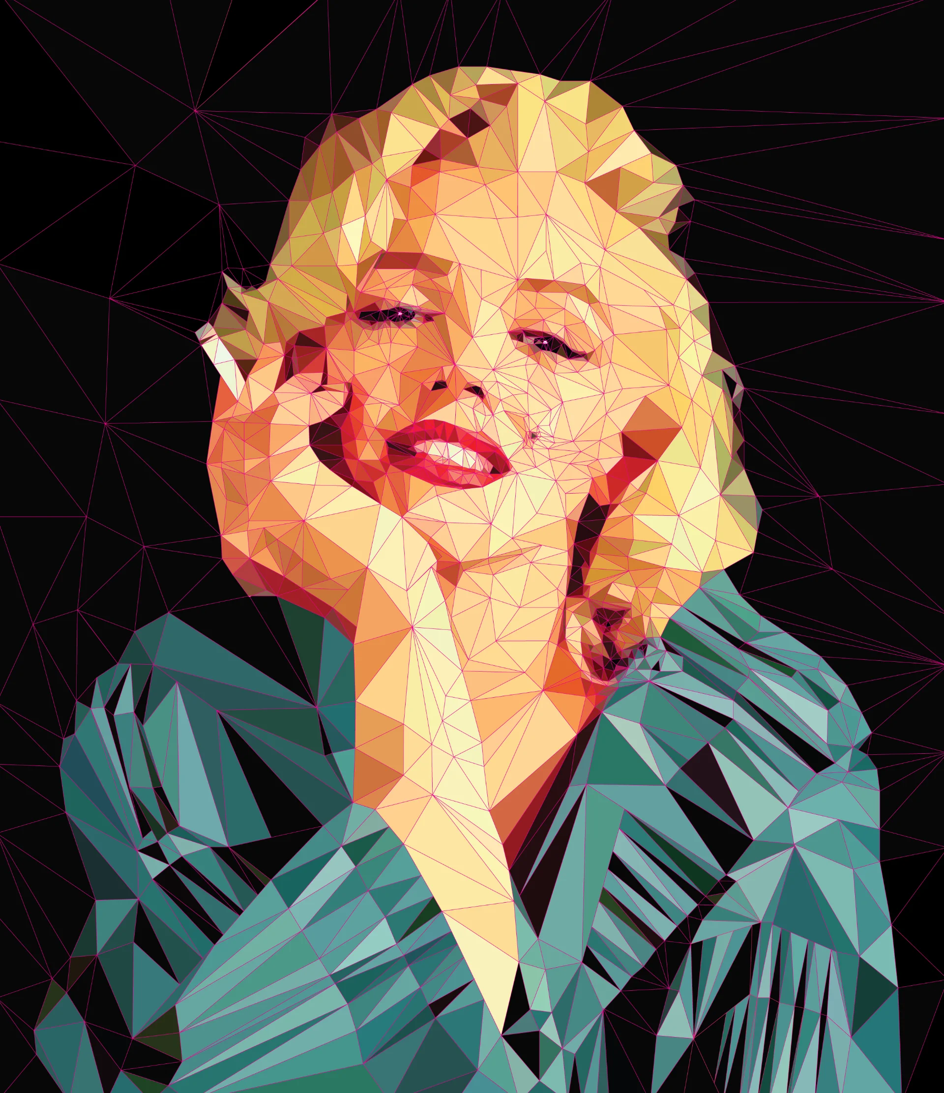 Tags: מרילין מונרו, דיוקן מרילין מונרו, אייקון הוליוודי, כוכבת קולנוע, הוליווד הקלאסית, אייקון נשי, פורטרט נשי, השראה נשית, לואו פולי, פורטרט גיאומטרי, אמנות דיגיטלית, משולשים, אמנות מודרנית, אמנות עכשווית, דיוקן מפורסמים, סמל מין