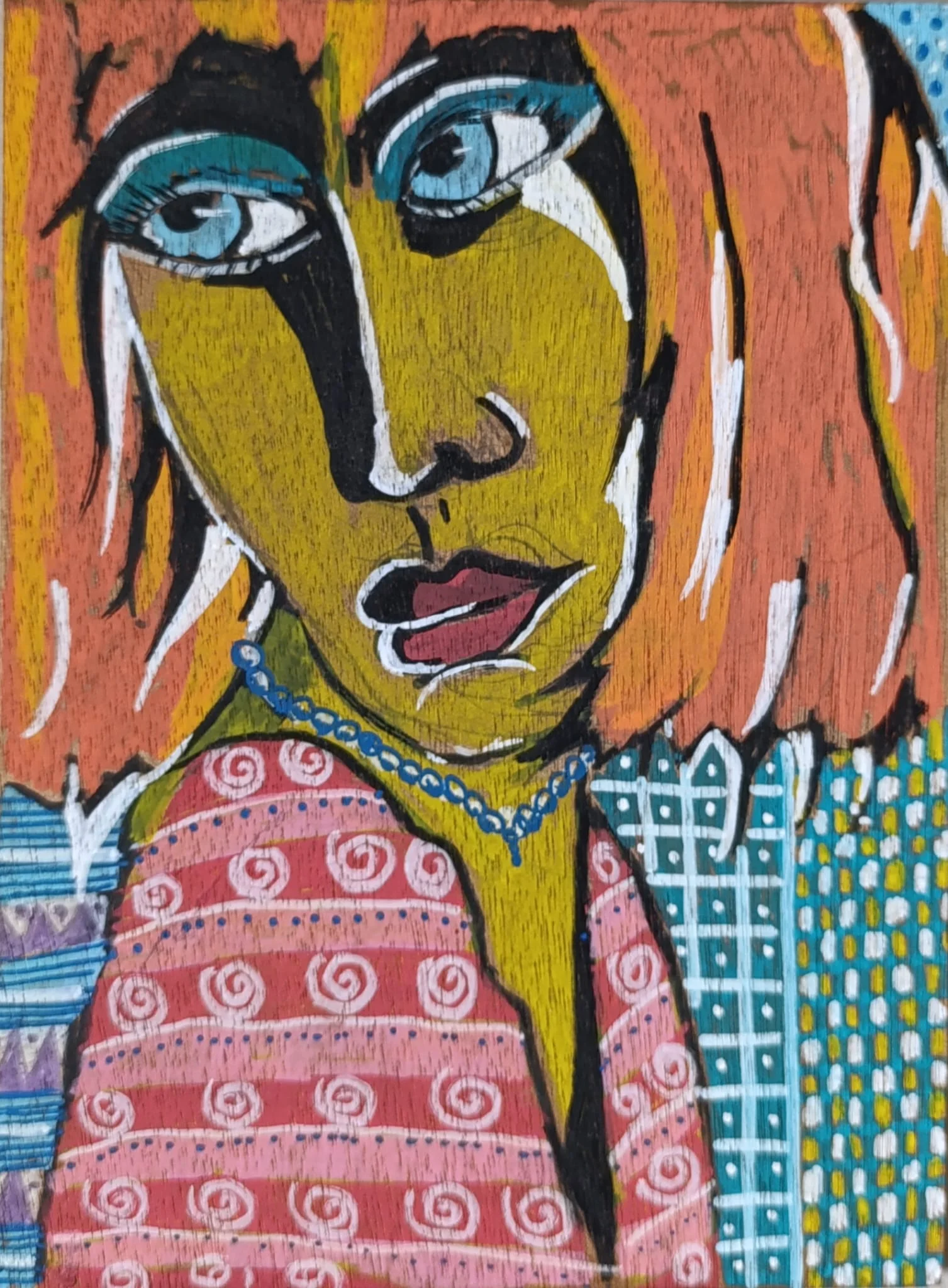 A marker drawing on a board of a woman looking back
