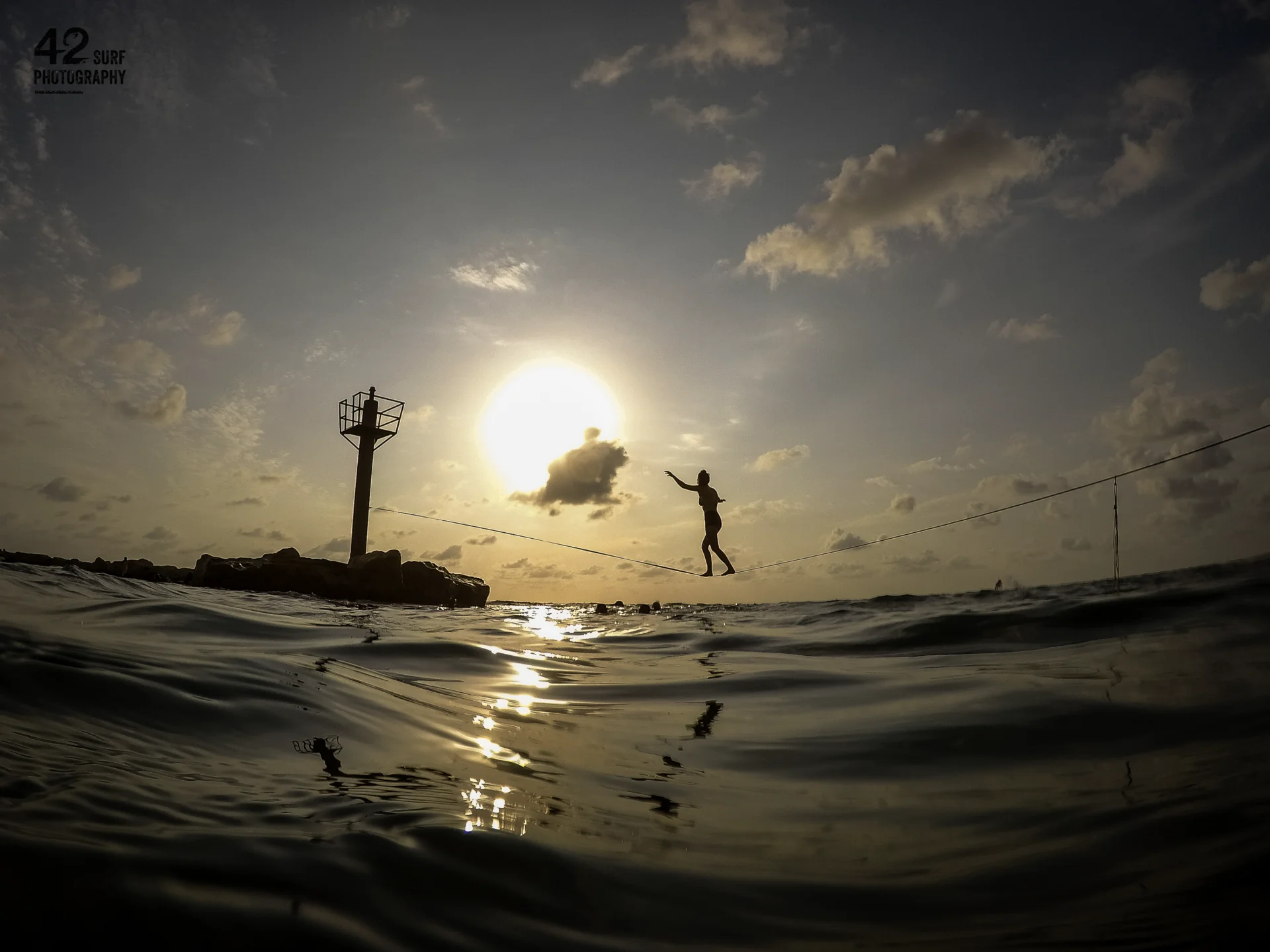 At the meeting point of sea and sky, a solitary figure moves along a thin line suspended above the water. The setting sun ignites the horizon in gold, transforming the rope into a thread of light stretched across the vastness. Below — depth, motion, uncertainty. Above — open sky. In between — a single human body holding balance. The image captures more than a physical act of equilibrium; it reflects an inner state. Balance here is not rigidity, but trust — a quiet agreement between body and breath, between gravity and intention. The sea shimmers with constant movement, yet the figure remains composed, suspended within a fragile geometry of light. On a Rope of Light speaks of vulnerability and courage, of walking forward despite the tremor beneath. It is a meditation on presence — on the delicate line we each trace between fear and freedom, weight and grace, earth and horizon.