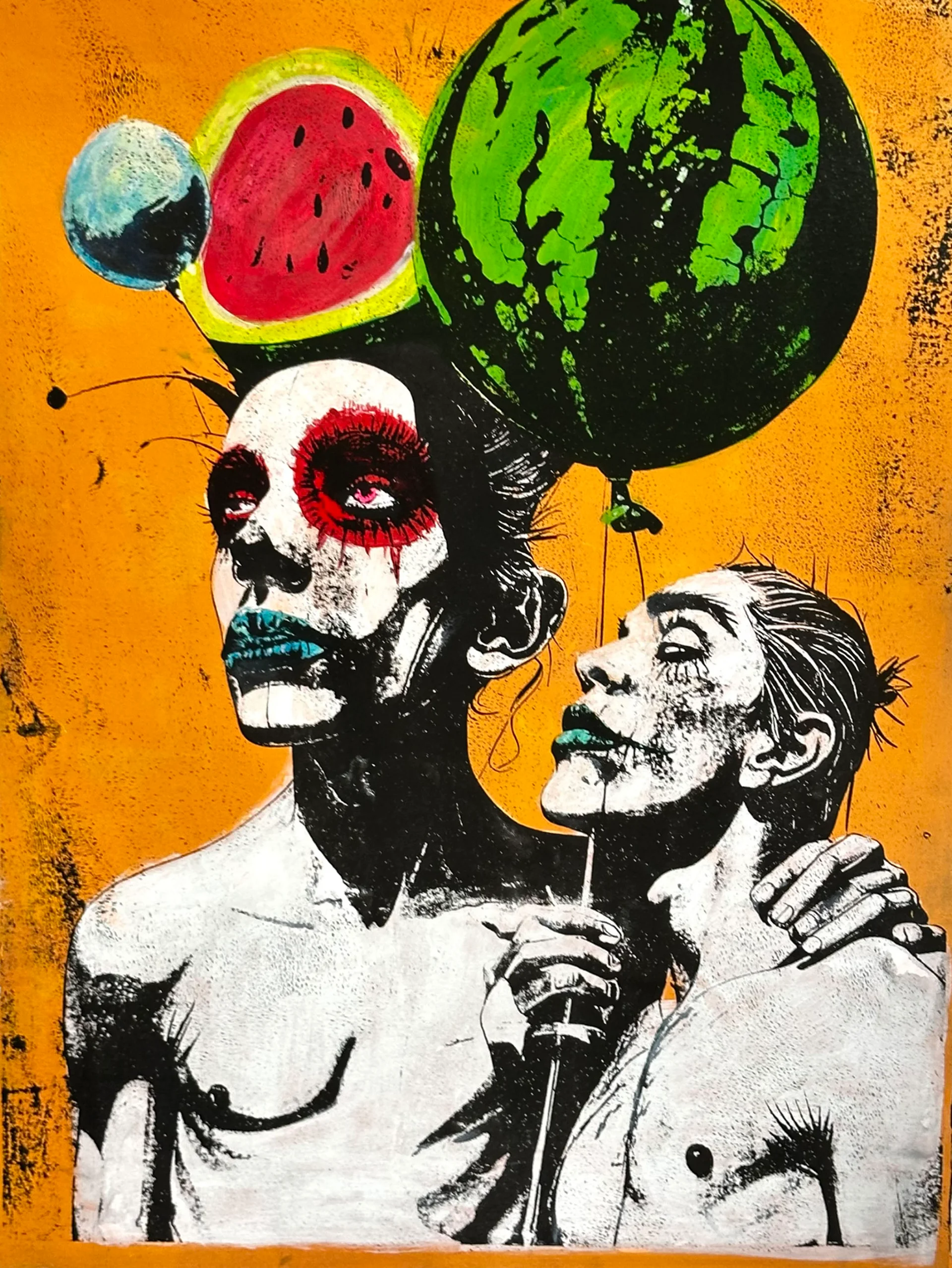 A surreal encounter between the carnivalesque and the bizarre, emphasizing human intimacy with an explosive fruity fantasy. The work captures a moment of surreal euphoria, where the boundaries between imagination, reality, and sensation blend.