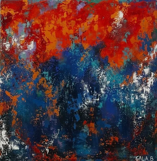 A bold collision between fiery intensity and deep calm, like emotion breaking and rebuilding at once. The layered textures and contrast create a living movement that keeps the eye exploring *Available for order in various sizes, with pricing adjusted accordingly