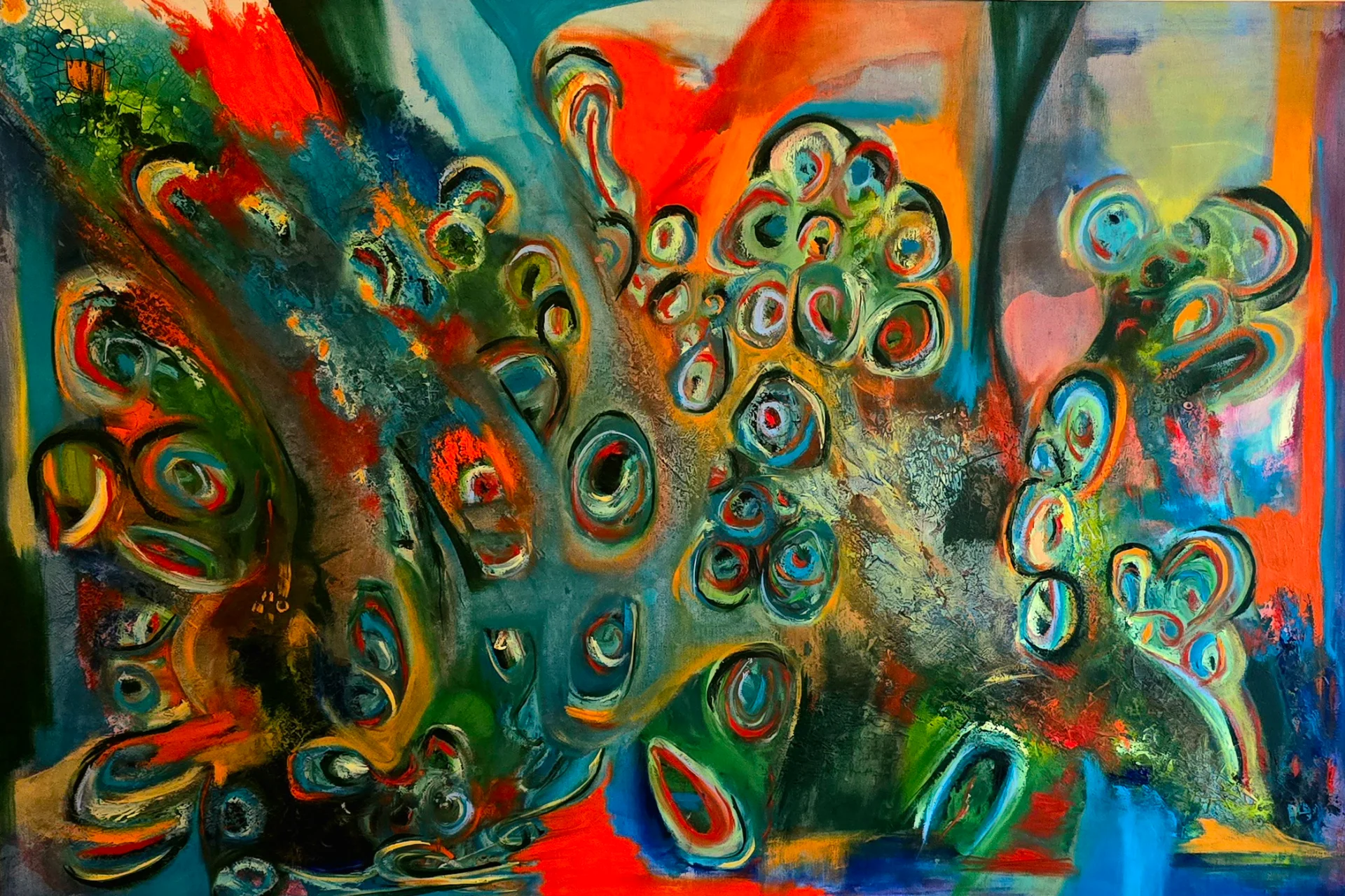Abstract painting, oil and acrylic on cavas. Mixed media.