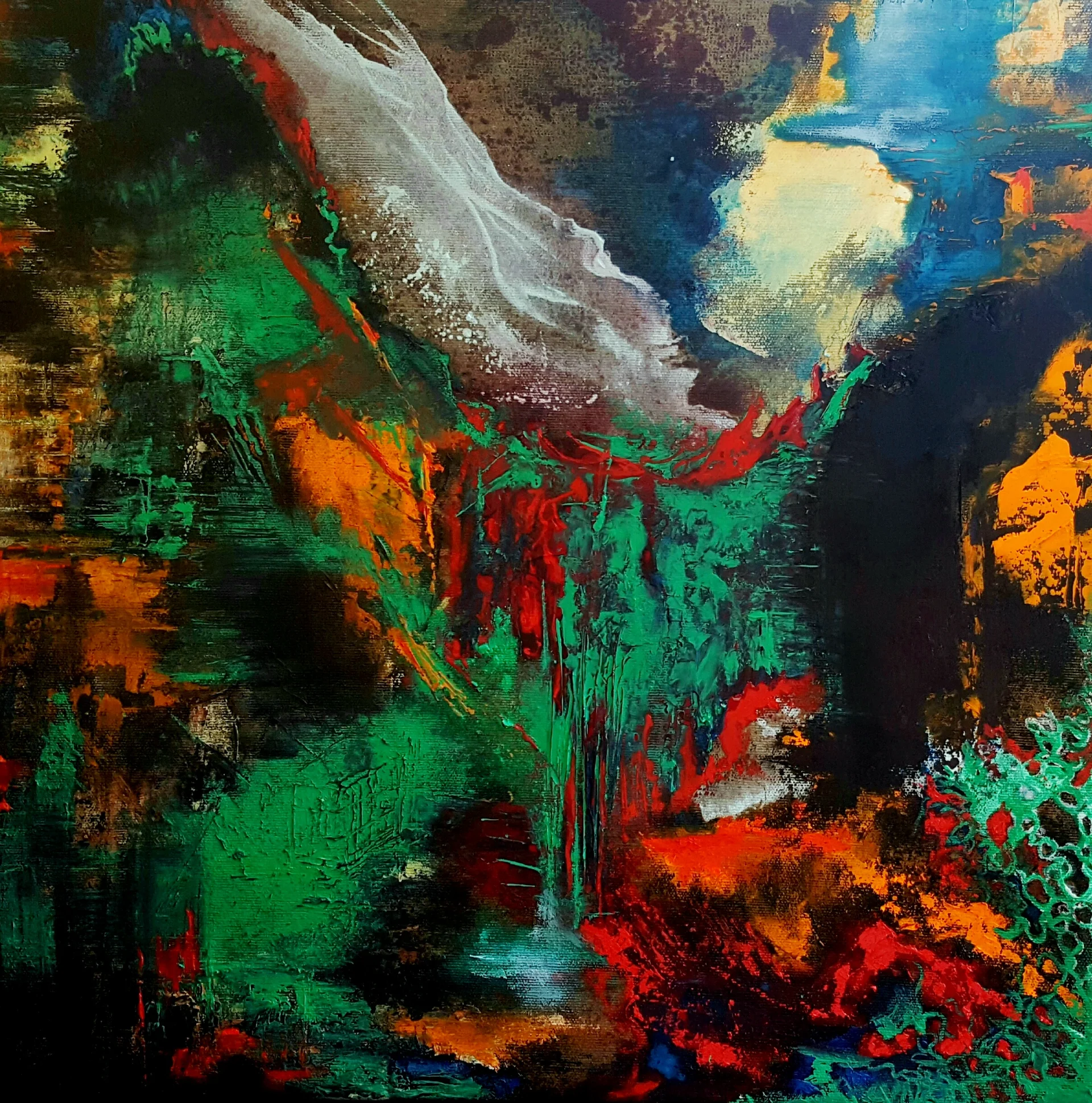 Abstract painting, oil and acrylic on cavas. Mixed media