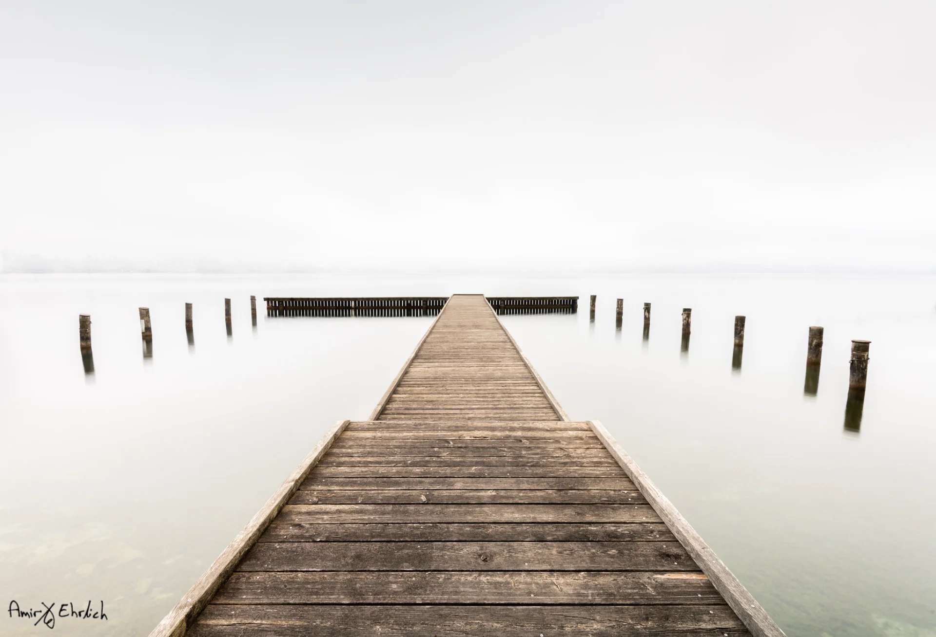 I like symmetry and often look for it when I travel. This pier that I found in south Germany challenged me especially. It allowed me produce a clean and symmetrical frame but together with it, the a-symmetric division of it's tip added something different and interesting. A kind of perfection that comes from imperfection.