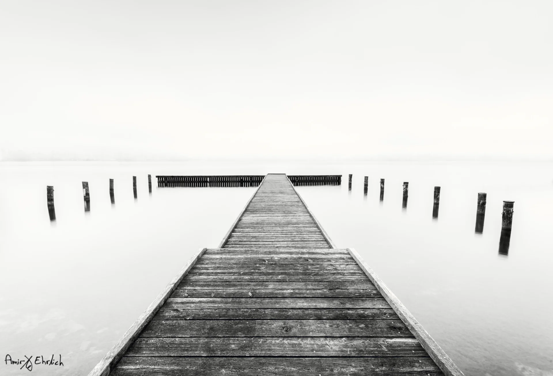 I like symmetry and often look for it when I travel. This pier that I found in south Germany challenged me especially. It allowed me produce a clean and symmetrical frame but together with it, the a-symmetric division of it's tip added something different and interesting. A kind of perfection that comes from imperfection.