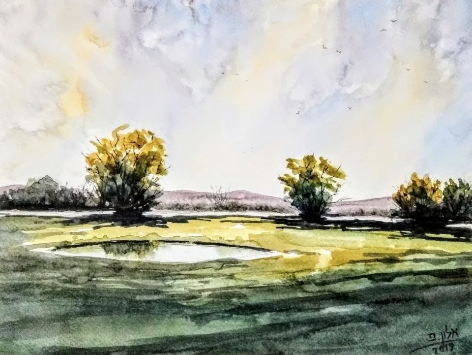 Tags: ืืื, ืืืจืฃ, ืขืฅ, ืขื ื ืื, ืฉืืืืืช, ืืจืืง, ืืฉืชืงืคืืช, ืฆืืขื ืืื, watercolors, aquarelle, birds, ืฆืืคืืจืื, ื ืืฃ, landscape, plein air, ืฆืืืจ, painting