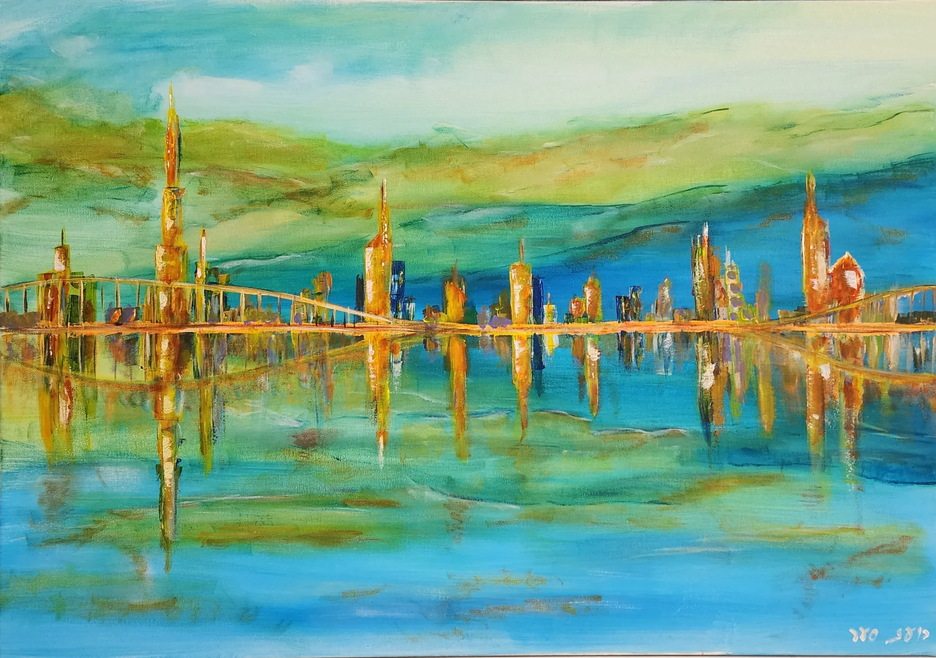 Towers between sky and water | Boaz Saar | Paintings | Under $1000