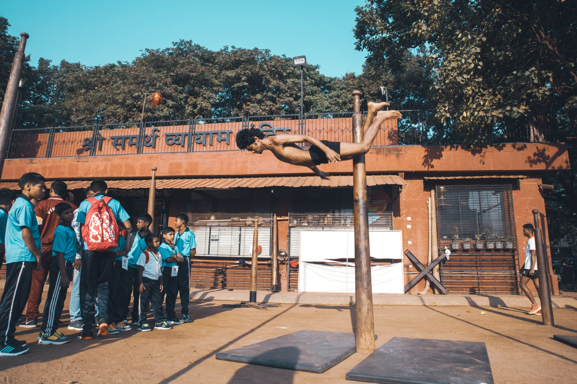 A young boy lifts himself into the air during practice at a yoga school in India. To an outside observer, it is an impressive moment of strength and control. Yet for the other students standing nearby in the courtyard, most of whom barely look at him, it is simply part of their daily routine. The photograph captures the gap between what appears extraordinary to a passing eye and the quiet effort that lies behind it.